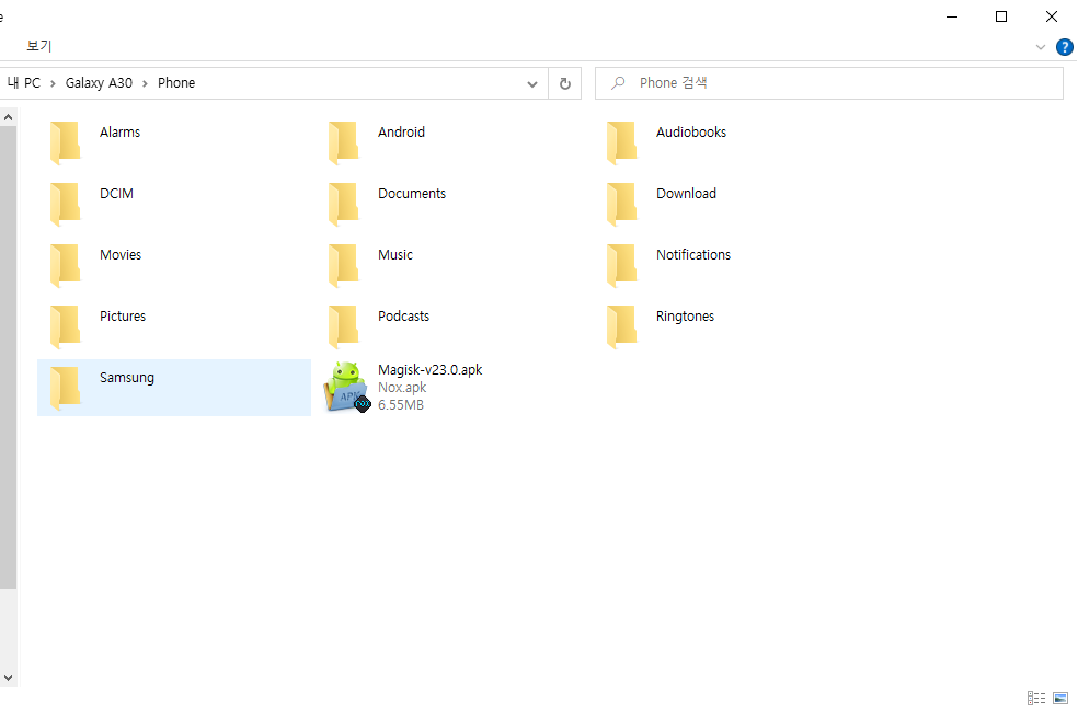 패치된 파일의 경로는 phone > Download이고 해당 경로로 접근하여 패치된 파일을 컴퓨터로 복사해준다.